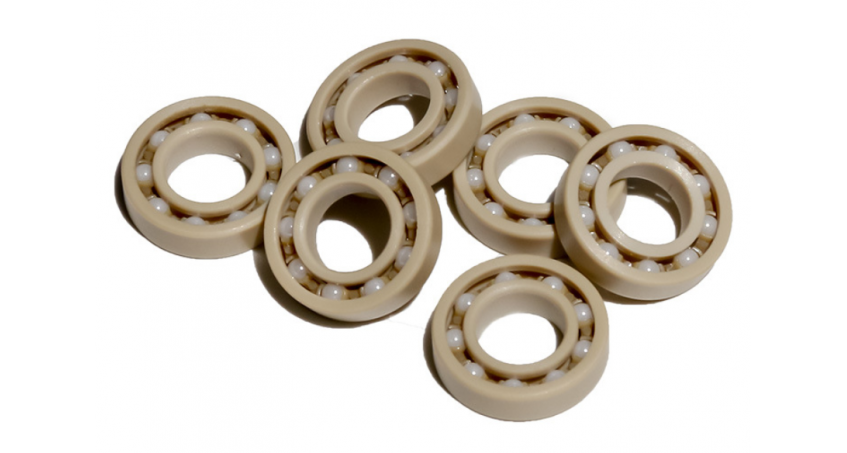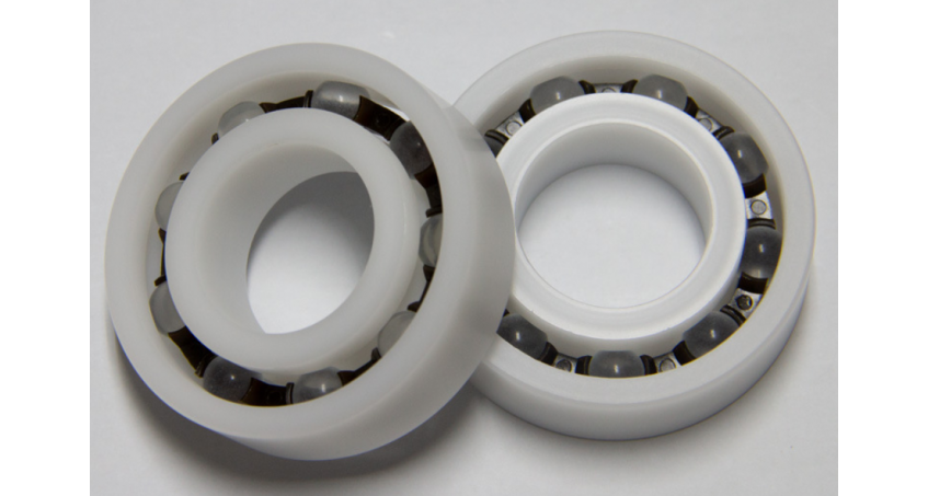 PVDF、PTFE(Teflon)、PPS(聚苯硫醚) 、PEEK(聚醚醚酮) 、PI(聚醚酰亞胺)等均證明是製作高溫塑膠軸承的理想材料,其中PI可在長期溫度290℃的環境下使用,短期耐溫最高可達350℃,是所有工程塑料中高溫性能最好的。