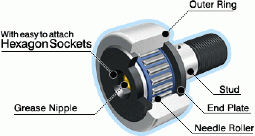 凸輪從動軸承作為凸輪機構的從動軸承和直線運動用的從動軸承具有高剛性和高精度,被廣泛用於機床、產業用機械手、電子元器件裝置以及OA設備等。